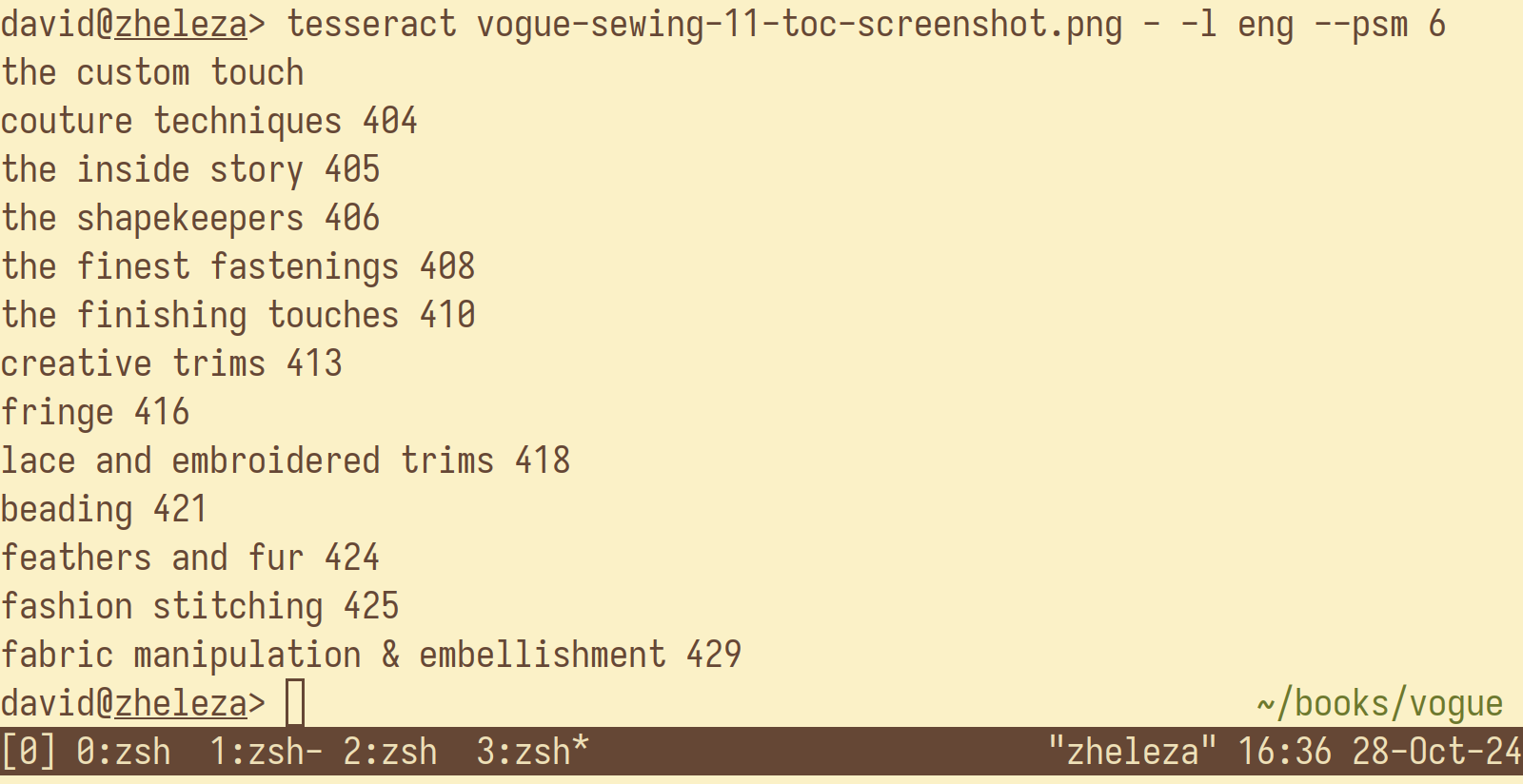 | also OCRed the TOC, playing with the page segmentation setting (2) in the terminal until | got output I could copy & paste to add a navigable table of
